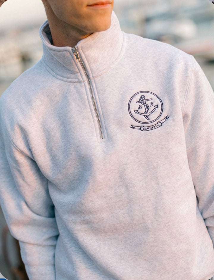 Anchor Quarter Zip Sweatshirt - Light Grey