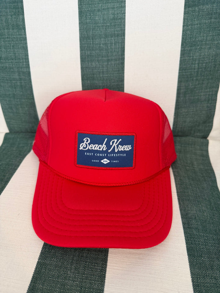 Featured in our signature five-panel trucker hat. Ultimate comfort provided from foam front panel, mesh back, sweatband, and adjustable snap. New East Coast Patch!