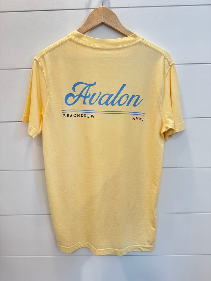 Stay comfy in this 100% cotton, unisex, oversized tee, designed for a relaxed fit. Features a front pocket with Beachkrew detailing and the Classic Avalon / Beachkrew AVNJ print across the back.