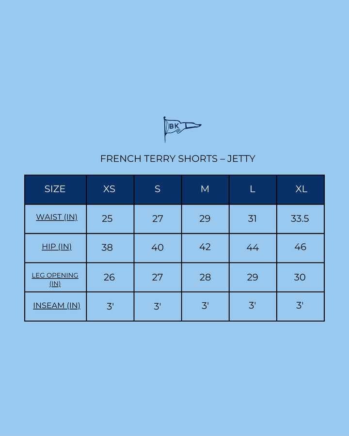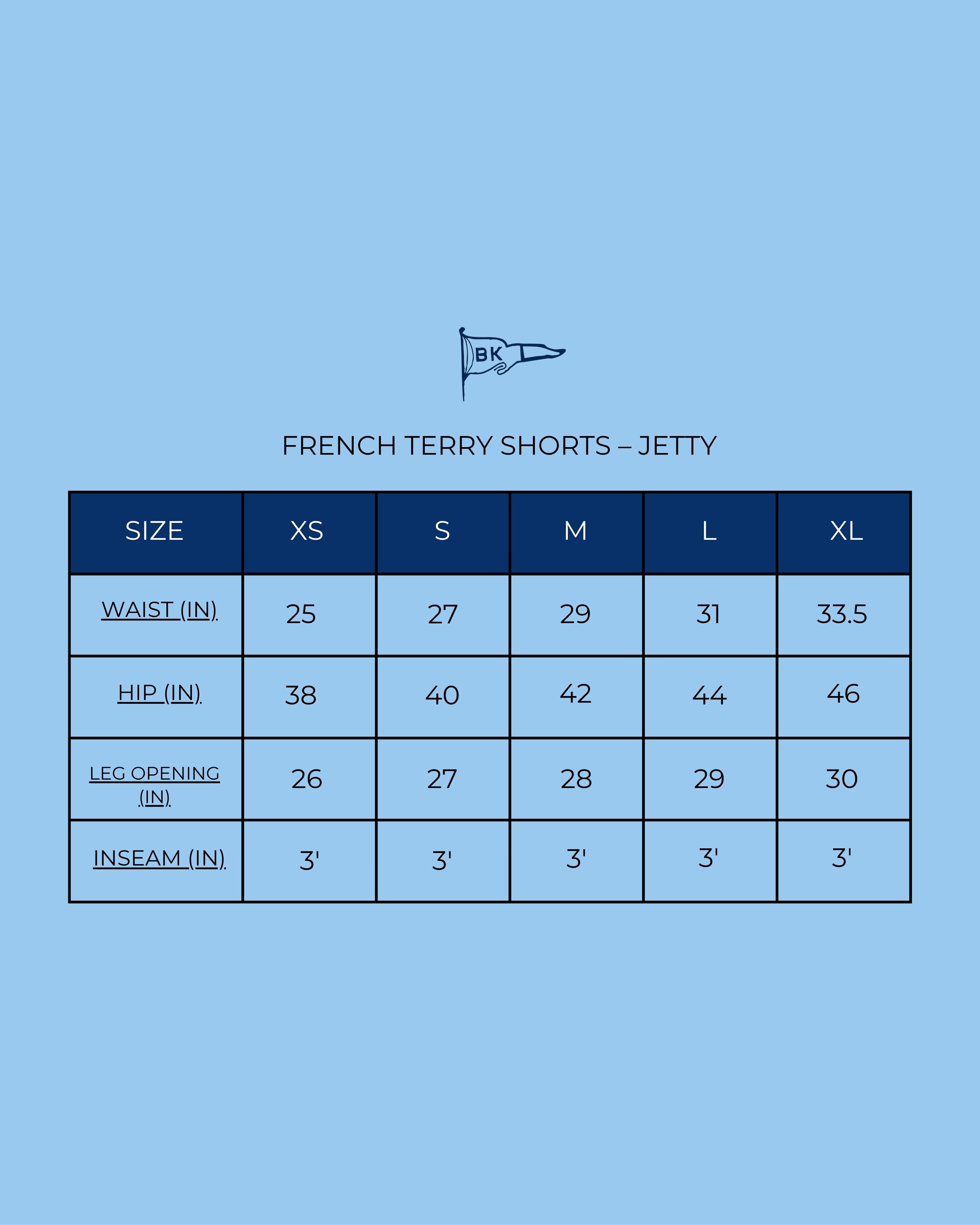 Meet the Avalon shorts in Jetty—a deep, nautical navy. These shorts are made from a premium 60% cotton / 40% polyester French Terry. The fabric is pre-shrunk and garment-dyed for that soft, lived-in feel from day one.