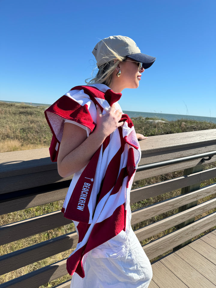 BEACHKREW BEACH TOWEL - RED STRIPED