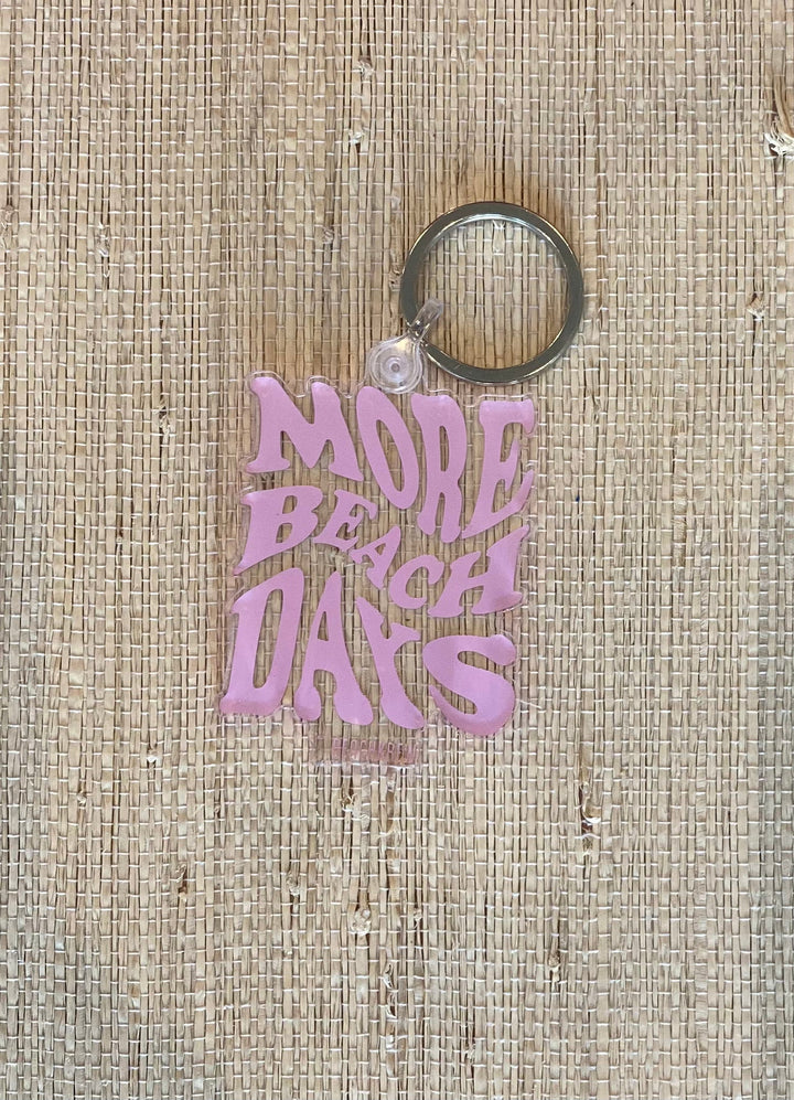 1.95" x 2.5" keychain with light blue and light pink More Beach Days design