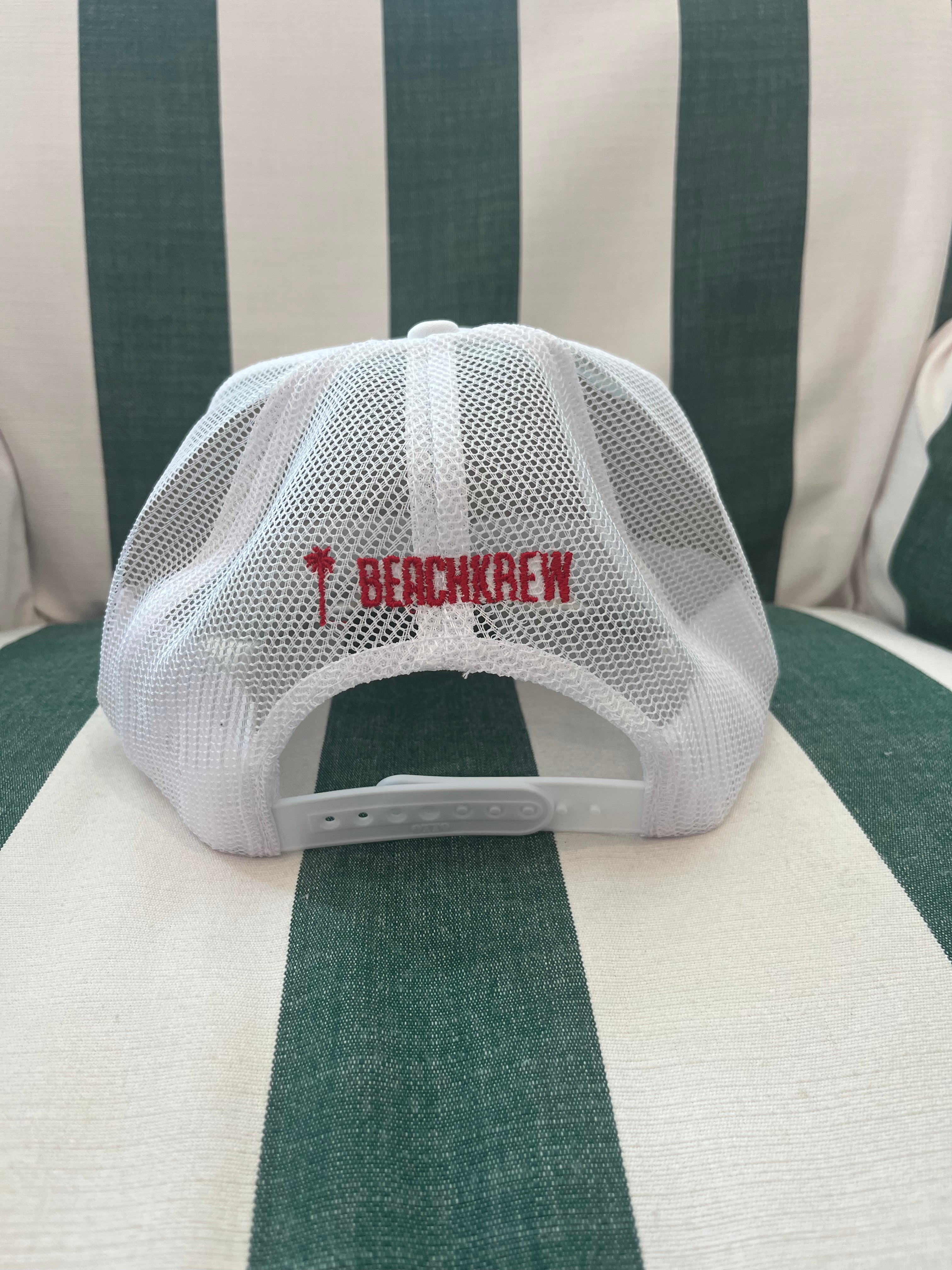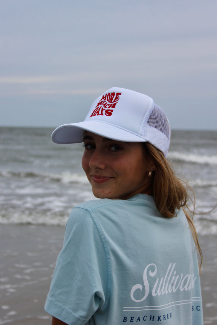 MORE BEACH DAYS TRUCKER HAT - WHITE W/ RED