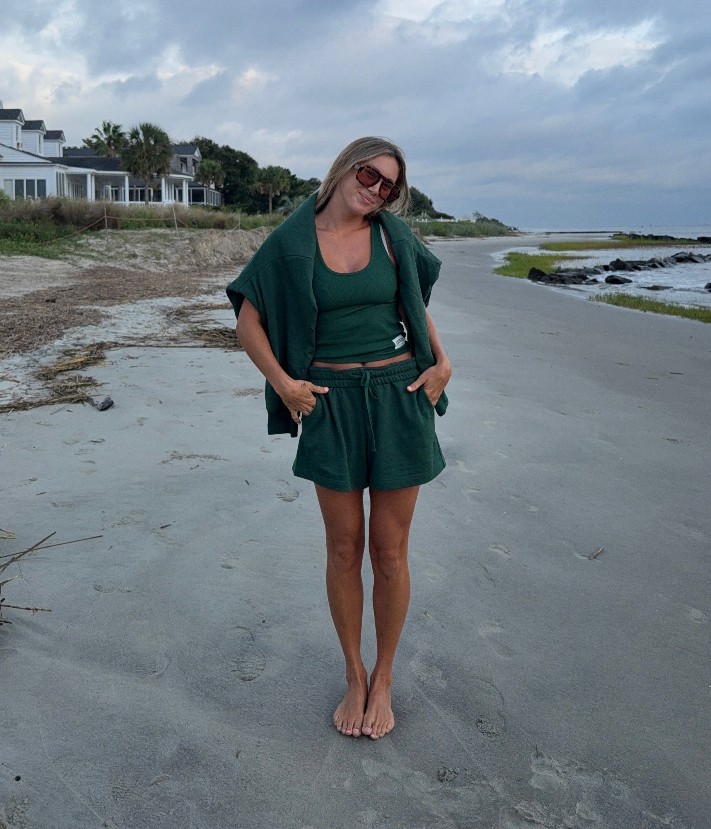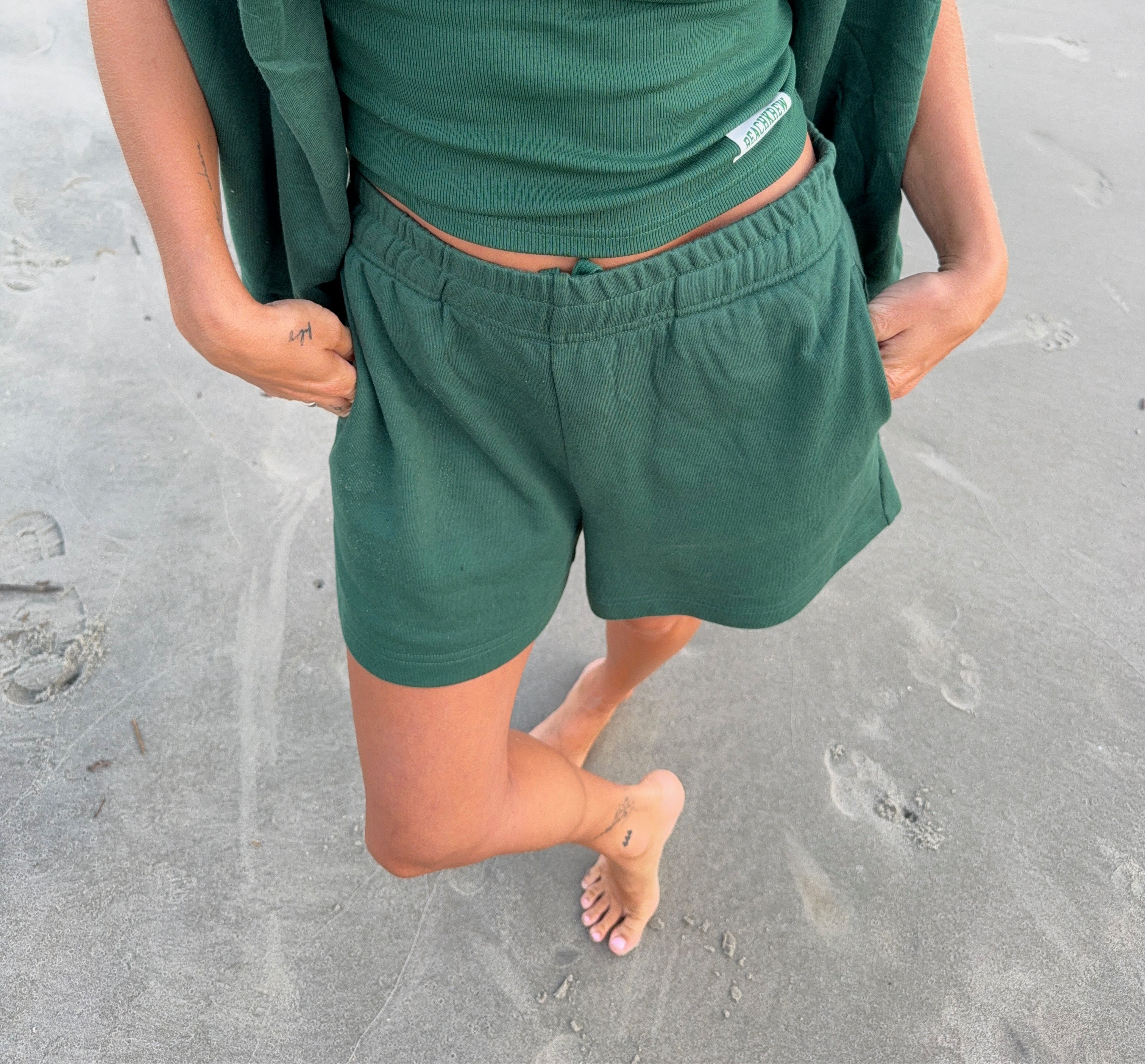 NEW City to Shore collection, these shorts are made from a soft, premium blend of 60% cotton and 40% polyester French Terry. Pre-shrunk and garment-dyed for a lived-in feel right from the start. Shown in Seagrass—a deep, earthy green that’s perfect for fall. Finished with our classic Varsity patch on the back, a true Beachkrew favorite.